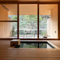 穏やかな山間で気を抜いて過ごす1200年続く湯治場の和み宿 このお宿が愛され続ける理由は居心地の良さ。館内90ヶ所以上の生花、穏やかな山々が借景の自然木の庭園、足のうらが喜ぶ全館畳敷き、ハーブをブレンドしたナチュラルドリンクを中心にお飲物はお食事中もどこでも無料で楽しめる。 館内のしつらえは2023年に世界三大デザイン賞IF DESIGNを受賞したnottuoが手掛け、自然木を使用した無垢の家具、中堅作家の作る焼物の食器、洗練されたアイテムがさりげなく使用されているのもこの宿の特徴。 食は山陰と瀬戸内の幸と里山の恵みが織りなす滋養を取り入れた和の会席料理だ。