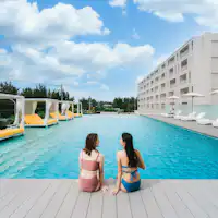 屋内外にひろがるラウンジと、開放感あふれるプールが特徴的なホテル