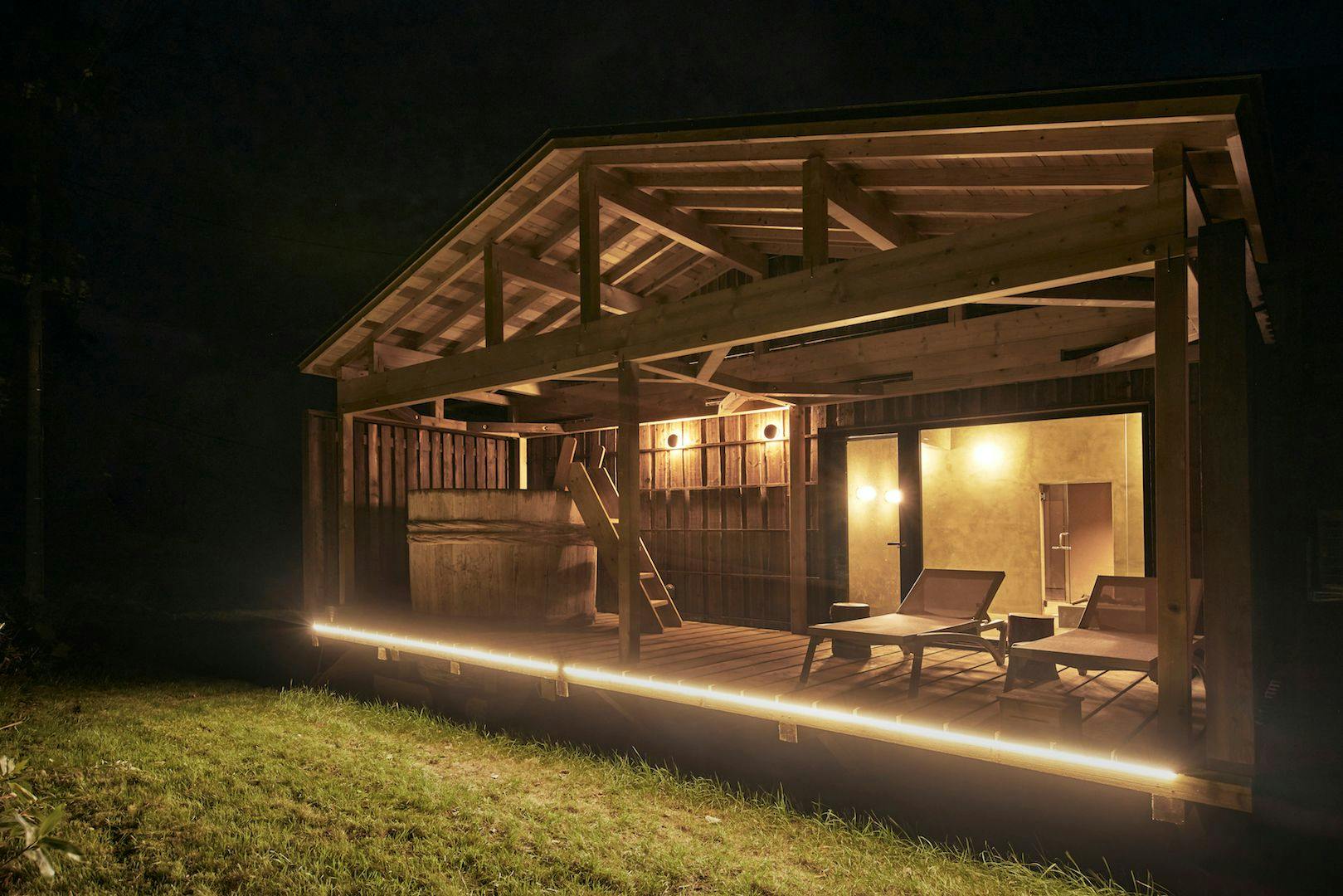 30,055平米を超える広大な敷地に1棟(266平米)のみの完全プライベート空間。 敷地内は宿泊ヴィラとレストラン棟のみとなっています。ご宿泊の間、TAPKOPはお客様のためだけの空間になります。広い庭を散策してみたり、芝生に寝転がってみたり、サウナのあと森の空気のなかで外気浴をしたり、ワインを飲みながらプロジェクターで映画を見たり。TAPKOPでの過ごし方は自由です。 プライベートな空間での時間をゆっくりとお寛ぎください。