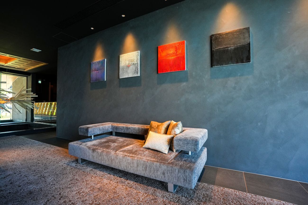 チェックインは2階のラウンジで。ウェルカムドリンクでお出迎えいたします。お食事の後にゆったりとお酒を堪能する場所としてもご利用いただけます。