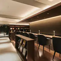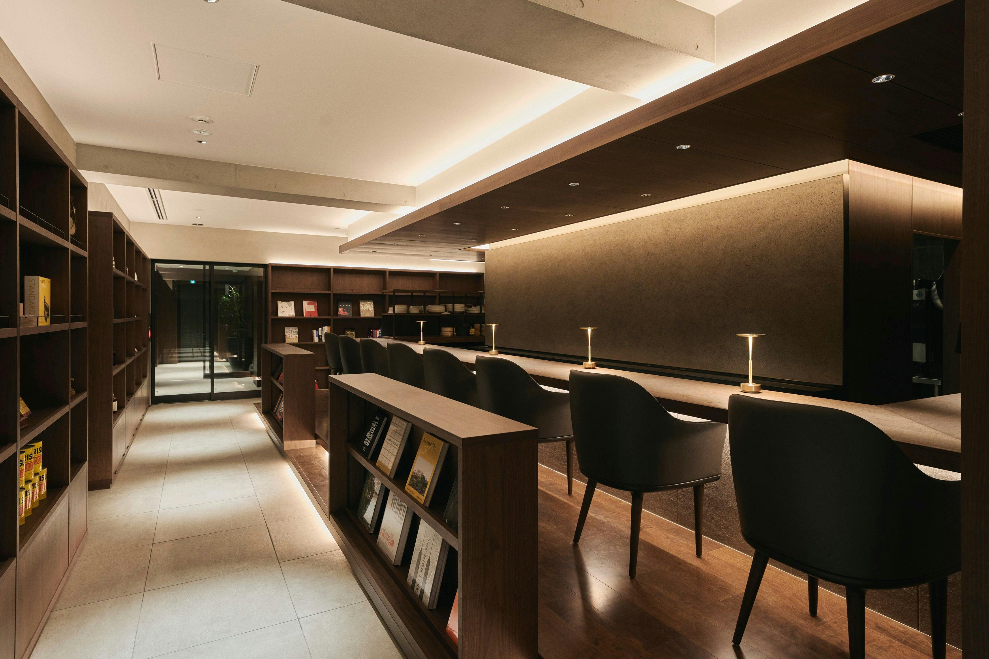 宿泊者のみが利用できる「blank」では、カウンターやラウンジスペースを設けて、ワインと一緒にお食事をお楽しみいただけます。ワインショップはデジタルで管理。カウンターやお部屋に設置のワインリ ストから購入いただけます。