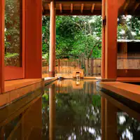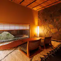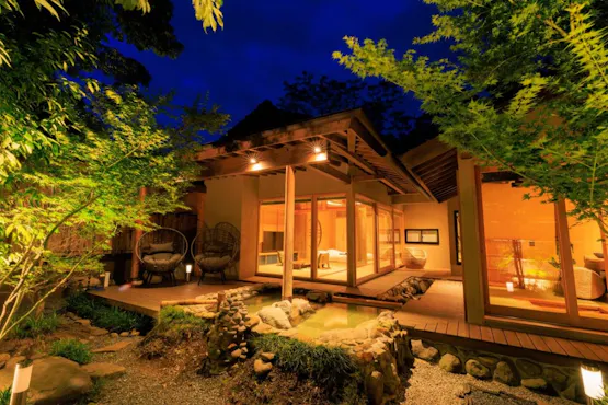 全室離れの露天風呂付スイートルーム。 4000坪の広大な敷地の中にある わずか十二棟の離れ宿は、そのすべてがスイートルーム。 伝統的な数寄屋造りとレトロモダンが融合した客室すべてに 源泉かけ流しの露天風呂を併設。 プライベートな空間としてご利用頂けます。 また、和食と洋食を融合した創作料理は 山海の幸に恵まれた九州の厳選された食材を使用。 美味しいおもてなしをご提供致します。 四季で彩りを変える木々花々や、夜空に輝く満天の星々、 ここでしか味わえない非日常の空間で 至福のひと時をお過ごしください。