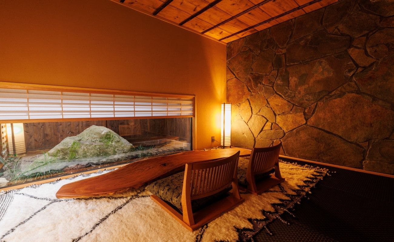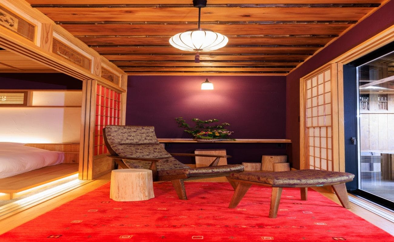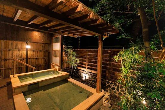 伝統的な数寄屋造りとレトロモダンが融合した、全室露天風呂付離れの宿