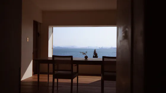 周囲の自然環境と共存するように、建築や家具一つ一つが手仕事から生まれました。 Heimaも外に広がる自然の一部であり、音や匂い、温度や風を感じる装置でありたいのです。 お客さまの宿泊体験も室内だけで完結せず、その季節その瞬間の豊かさを感じられるものとなれば。 そんな想いで、一日一組までのご案内とさせていただきました。穏やかにゆっくりとおくつろぎいただけます。 施設はリビング、ベッドルーム、ダイニング、バスルームと分かれ、どの部屋も大きく海に開き、瀬戸内海の風景を一望できます。 時間によって刻一刻と移りゆく自然の風景をお楽しみください。