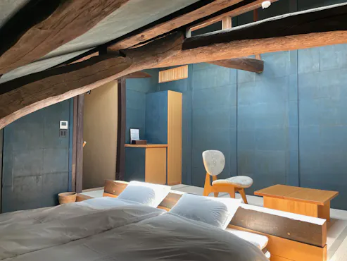 大正時代の質屋を、地元の素材を使い、地元の職人の技術で仕上げた、4室8名だけの小さな宿です。 どの地域にもその土地に根差した素材があり、それを扱う技術が残っています。 そんな町の文化と風土を現すものをつくりたい、そんな想いからできた宿です。 都会のホテルのような華やかさやサービスはありませんが、ゆっくりと丹波・福知山の時間を感じて頂けたらと思います。