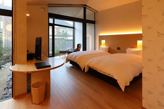 「暮らすように旅をする」をコンセプトに、お元気な方も健康状態にご不安がある方も、たくさんの方に安心して旅行を楽しんでいただきたいという思いから「STAY玉の湯」は2024年1月に誕生いたしました。介護福祉士の資格を持ったスタッフを配置しており、通常の滞在型ホテルとしてのご利用はもちろん、健康状態にご不安がある方や滞在にお手伝いが必要な方も安心して「由布院ステイ」できますようお手伝いいたします。「STAY玉の湯」にご宿泊のお客様は、「本館玉の湯」の一部施設もご利用いただけます。
