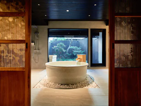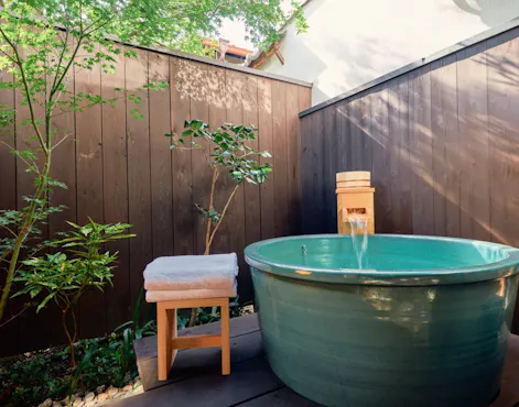 京町家の建築美からインスピレーションを受けた「Kyoto Machiya 鴨川ガーデンズ」は、庭園を中心に京町家の美しさを追及しました。 庭園は緑に包まれ大きな紅葉の木があり、季節ごとにその姿を変えます。 一年を通し変化するこの庭園は、自然の美しさと日本の伝統的な魅力が融合する場です。 静寂で魅力的な雰囲気の中、心を癒し、感動を与える特別な体験をお届けします。