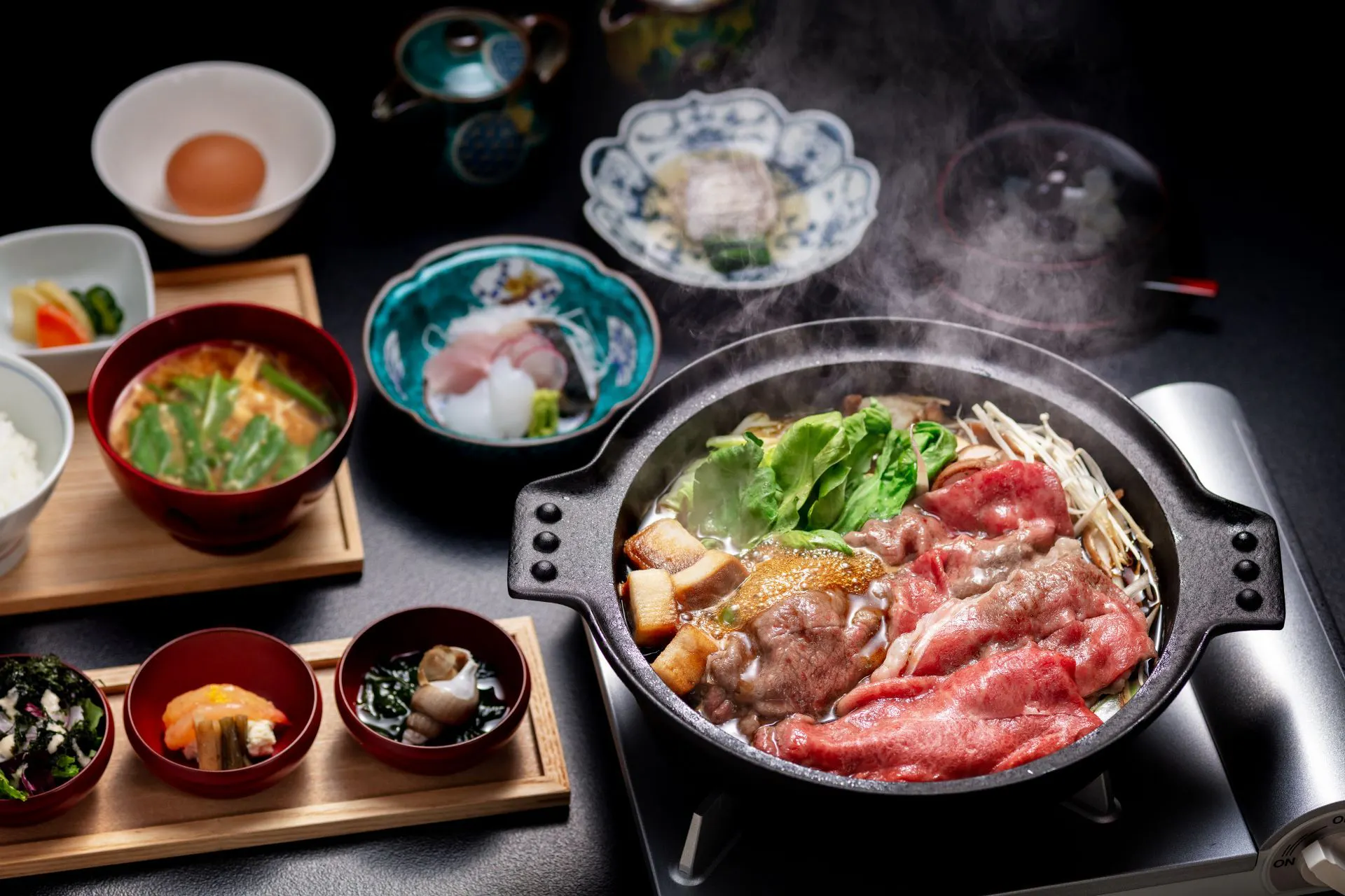 能登牛と春の地野菜のすき焼き鍋を囲んで、美味しい時間をお過ごしください。