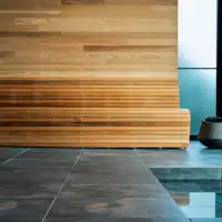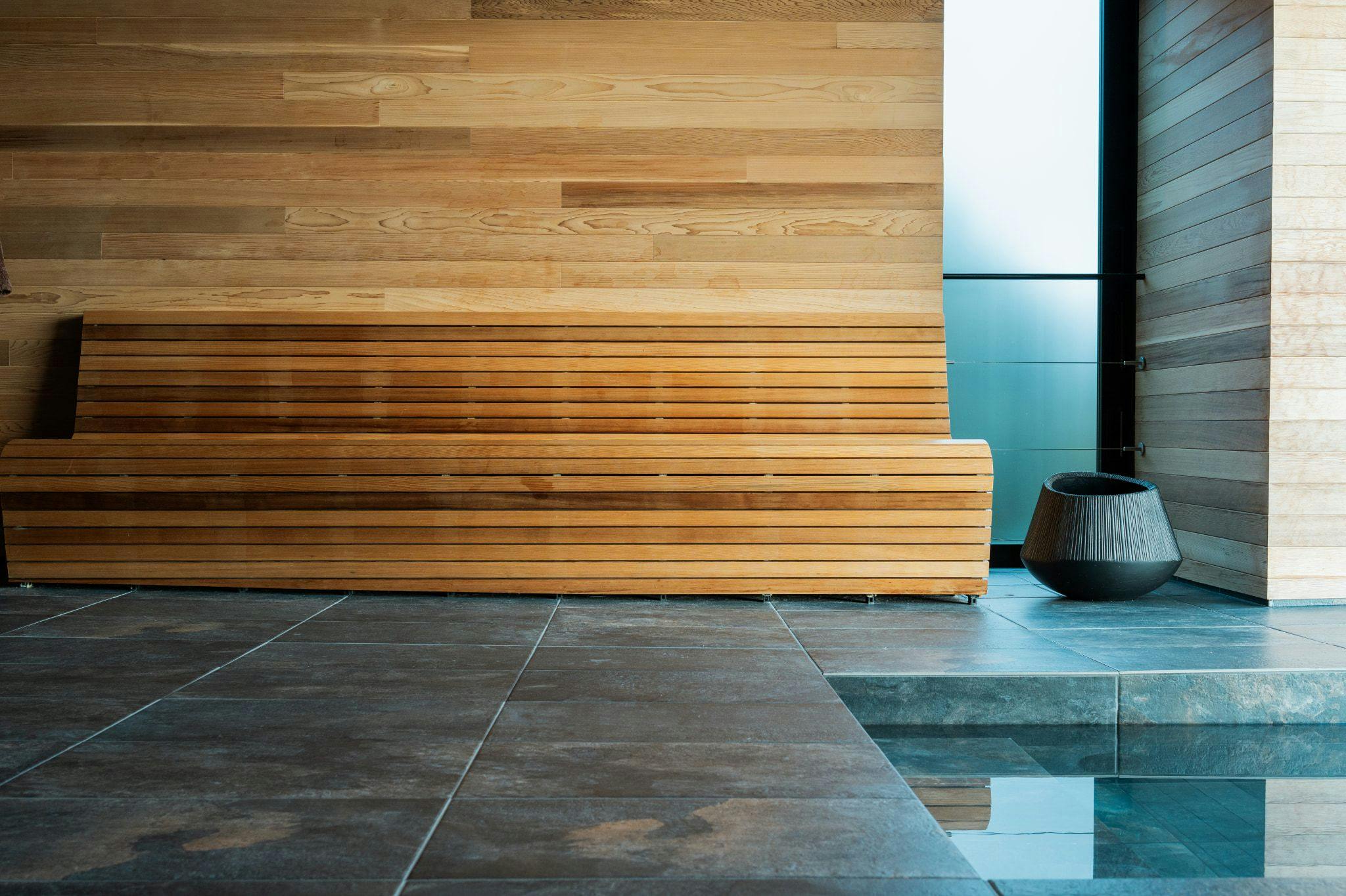 木の香りが漂うサウナ室。サウナ好きにはたまらない深い水風呂。使用されている水は敷地内から湧き出る軟水の柔らかい地下水を。