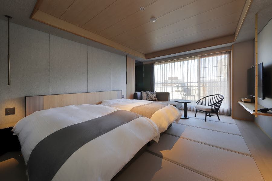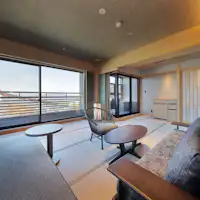 伊香保の豊かな自然に抱かれ、訪れるすべての方を温かく迎え入れる――。 そんな想いを込めて「楓と樹」は誕生しました。 伊香保の街並みを一望できるテラスやルーフトップバーが広がり、足湯に浸かりながら、心ほどけるひとときをお楽しみ頂けます。 伊香保の名湯・黄金の湯・白銀の湯を堪能できる客室露天風呂。 和の趣とモダンの上質な空間で、心に残る特別な時間をお過ごしください。