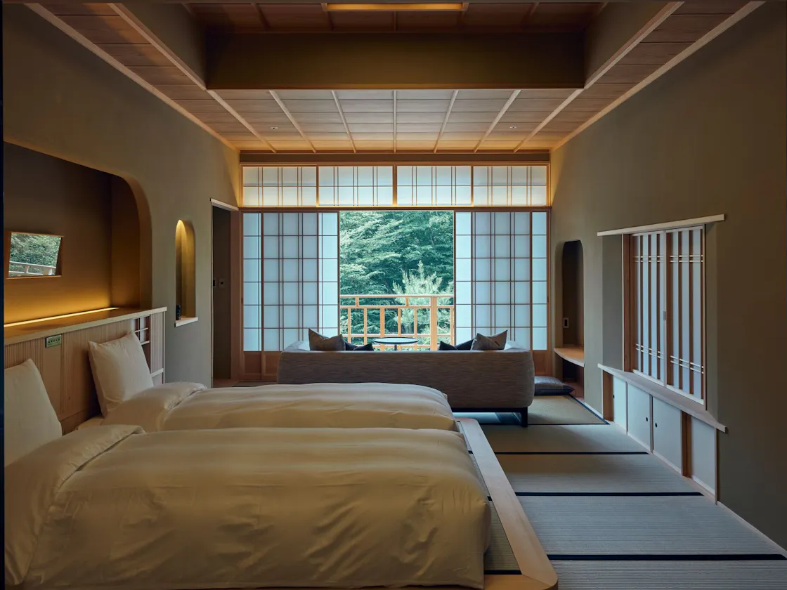 畳敷きの和室には障子を介して優しく光が広がり、穏やかな時間が流れます。景観を眺めながらご入浴いただける御影石風呂など、スタンダードの客室ながらも上質なご滞在をお過ごしいただけます。 ※気象状況ならびにお部屋によっては富士山がご覧いただけない場合がありますことご了承くださいませ。 <ご夕食場所> ダイニングでのご提供となります 12歳以下のお子様が同伴の場合、ダイニングの個室または茶寮でのご案内となります。 <割烹・鮨・鉄板焼き ご希望の場合> 追加のご料金で「割烹、鮨、鉄板焼き」をダイニングでお楽しみいただけます ご希望の場合は、予約センター(0120-131-331)までお問い合わせください <ベッドタイプ> 畳ベッド <客室設備> 空気清浄機、WIFI無料接続、スマートテレビ、CNN放送、ウォシュレットトイレ、ミニバー、電気ケトル、ミネラルウォーター、煎茶と茶器のセット、グラス、ボトルオープナー、マドラー、セーフティーボックス、文箱と便箋セット、浴衣、寝巻き、ヘアードライヤー