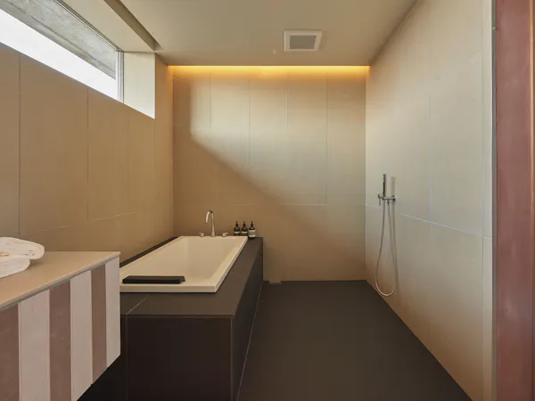 【美しい砂浜を一望する客室】 レストランに隣接して1組様限定の客室をご用意。まわりを気にせずご家族、ご友人だけのプライベートな時間をお過ごしいただけます。ダブルベッド2台が備わったゆとりのあるベッドルーム。静かなコバルトブルーの海、一面真っ白な波で覆われた海、さまざまな壱岐の海を間近に感じられるリビングルーム。刻一刻と変化する海の表情、潮の香り、繰り返す波の音。ここでは静かに時間が過ぎていきます。 3名様以上でご利用の場合、エキストラベッドのご用意も可能です。
