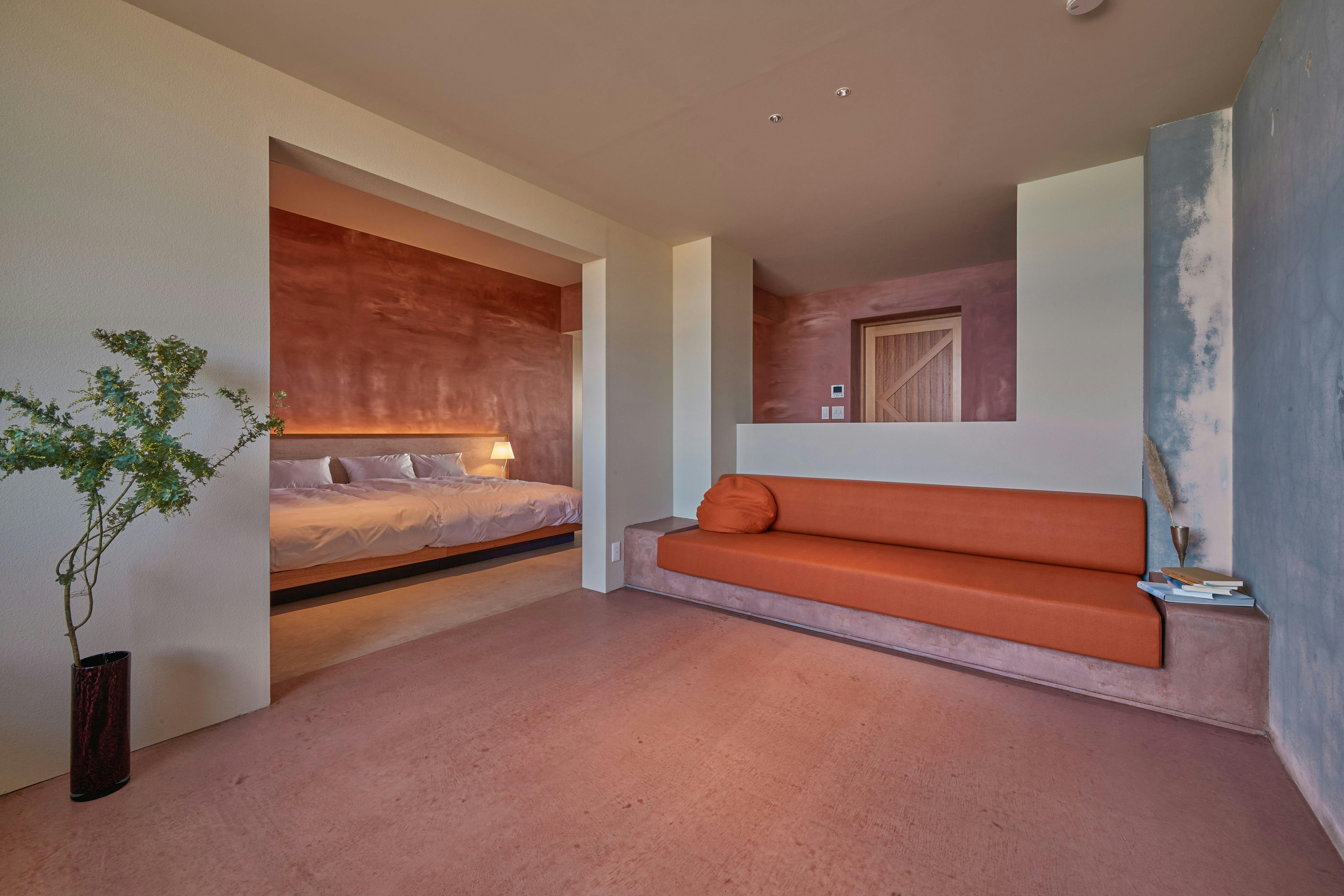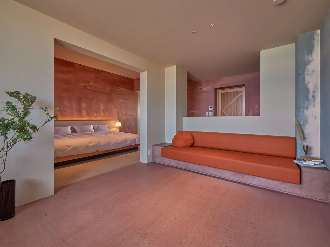 HOTELチェックイン後、夕暮れに染まる空を望みながら隣接するレストランにて18時おまかせコースの開始となります。翌朝はレストランにて彼は誰シェフ特性の和朝食をご提供します。 1日1組限定の客室は、まわりを気にせずご家族、ご友人だけのプライベートな時間をお過ごしいただけます。ダブルベッド2台が備わったゆとりのあるベッドルーム。静かなコバルトブルーの海、一面真っ白な波で覆われた海、さまざまな壱岐の海を間近に感じられるリビングルーム。刻一刻と変化する海の表情、潮の香り、繰り返す波の音。ここでは静かに時間が過ぎていきます。