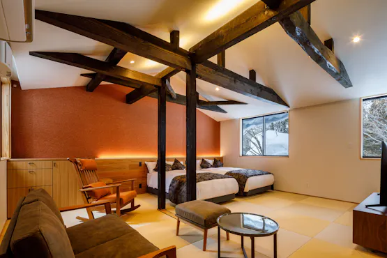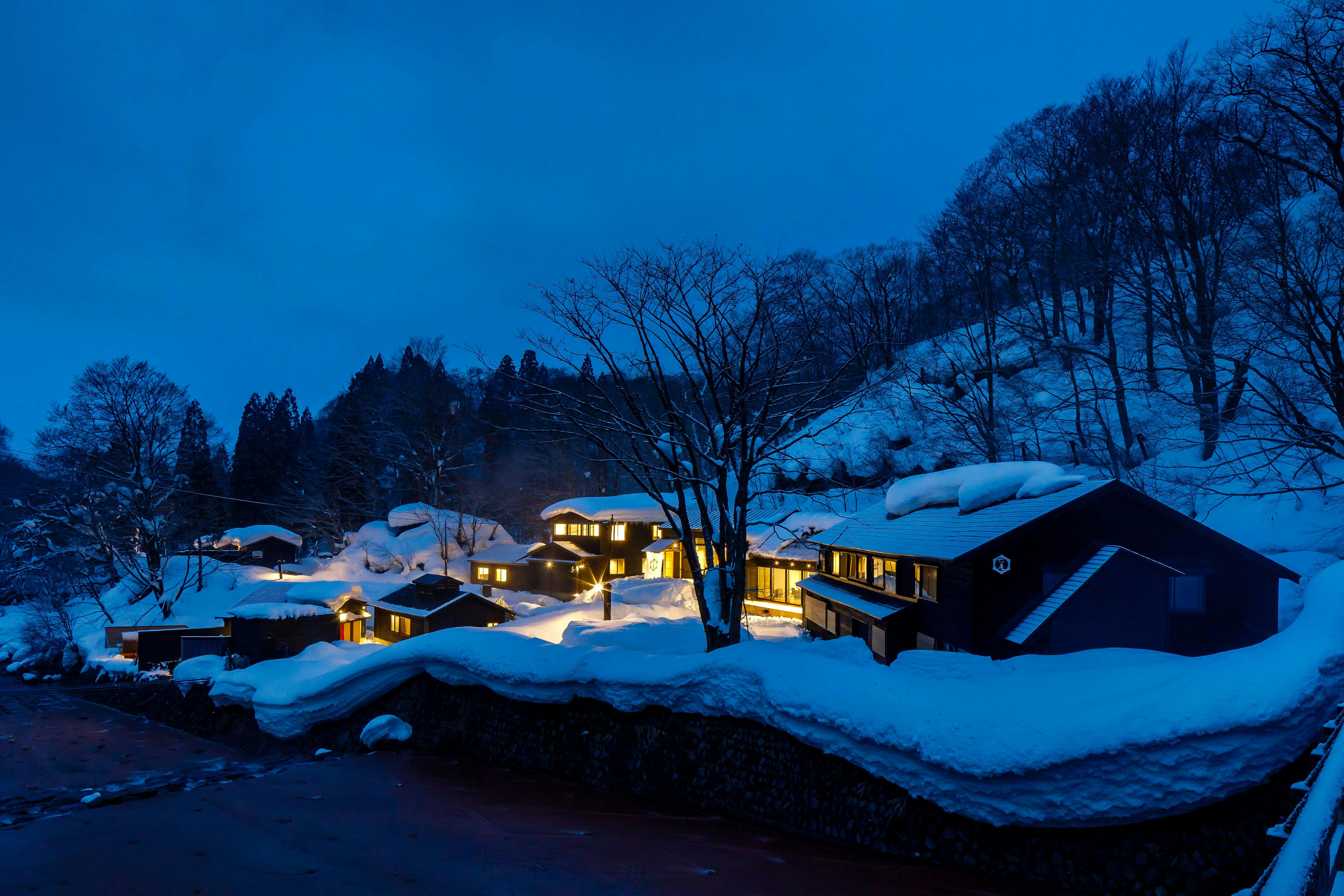 孫六温泉の静寂に包まれた湯宿。 乳頭温泉郷の奥深く、先達川に寄り添うように佇んでいます。 山の息吹を感じる春、木々の緑が生い茂る夏、紅葉が彩る秋、雪が静けさを運ぶ冬。 古より湧き続ける源泉掛け流しの湯に身を沈め、先達川のせせらぎとともに、時を忘れるひととき。 六庵で、自然と調和する穏やかな滞在をお楽しみください。