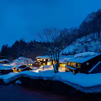 田沢湖駅からバスで50分、乳頭温泉バス停からさらに徒歩15分の山の中にあり、雪見風呂を堪能できます。料理も美味しいです。周りに何もないので、ラウンジで飲み物が飲めたり、自販機があるとよかった。またチェックインに時間がかかったのが残念でした。