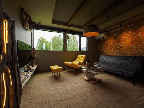 オーナーの釣りへの深い想いを、琵琶湖とマキノ町の自然が惹きつけ、この地で漁師となり、その暮らしとともに宿を営んでいます。空間には琵琶湖の流木を用いた手作りのインテリアを配し、自然と調和する洗練されたデザインに仕上げました。 2階のリビングや檜と御影石を組み合わせた浴室からは、四季折々に表情を変える並木の景色を一望。 ご夕食は、長年親しまれてきた老舗レストランの料理を、ホテルライクな落ち着きの中でゆったりとお楽しみいただけます。 静けさと上質さを大切にした、大人のための滞在をお届けします。