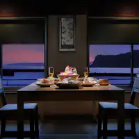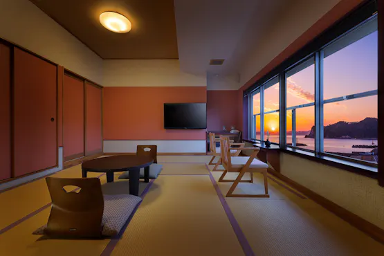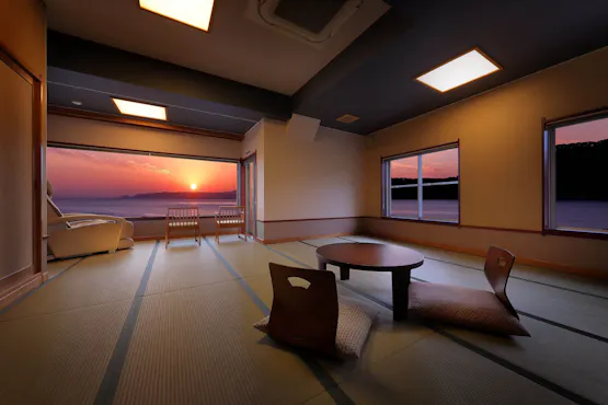 海の幸大好きKURO 2025/12/17スタッフの方々が適度な距離感で接してくれるので静かに過ごしたい方、プライベート重視の方にはうってつけのお宿です。食事とお風呂以外は貸し切りか?というほど誰にも会わないです他の方々も書かれているように、食事のボリュームは多めだと思います金目鯛の煮付けや兜焼きは特に美味しくいただきました海鮮好きには大満足出来るでしょう天気が良い日は綺麗な夕陽が観れますので、チェックイン後に温泉に入られる方は、早めに温泉を楽しんでおいた方が良いですよ。ロビーでいただける無料のビールを部屋に持ち込んで、ビールを飲みながら眺める夕陽は格別です。(画像は部屋から観た夕陽です)海鮮が好きで、静かな時間を過ごしたいならお薦めのお宿になります【初めて車で訪問する方に】駐車場がお宿の向かいにある駐車場を利用する事になりますが、駐車場に車をいれる前にフロントでパスカードを受け取ってから車を駐車場に入れるようにして下さい。パスカード無しで駐車場に入れてしまうと、他のお宿さんとの関係で一度車を出さないといけなくなりますので、パスカードを預かってから入庫されるとスムーズに駐車出来ます。