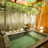 ・営業時間: 16:00~22:00 ・温泉: あり ・かけ流し: あり ・にごり湯: なし ・補足事項: 源泉100% (加水) 源泉かけ流しの2つの貸切風呂がございます。 ご家族などで、ごゆっくりとおくつろぎいただけます。 貸切時間:50分【有料・事前予約】