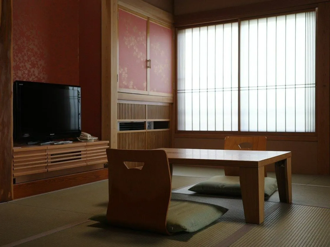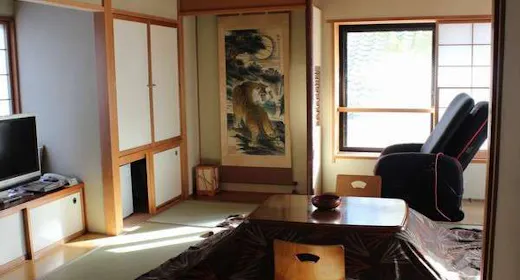 お2階の2間続きのお部屋です。 眺望は、自慢できませんが・・・ 2017/10月リニューアル。 居間とベッドルームの二間のお部屋でゆったりお過ごしください。 セミダブルのベッドが2台入りました。 <禁煙室> ・マッサージチェア ・冷蔵庫(空っぽ) ・洗面所 ・温水シャワートイレ ・冷暖房完備 ・液晶テレビ ・DVDプレーヤー ・加湿空気清浄器(ionプラズマクラスター) 冬季には、「こたつ」をご用意 注)2階(階段がちょっと急斜)ですので、 おみ足の不自由な方などは、1階のお部屋をご選択ください。