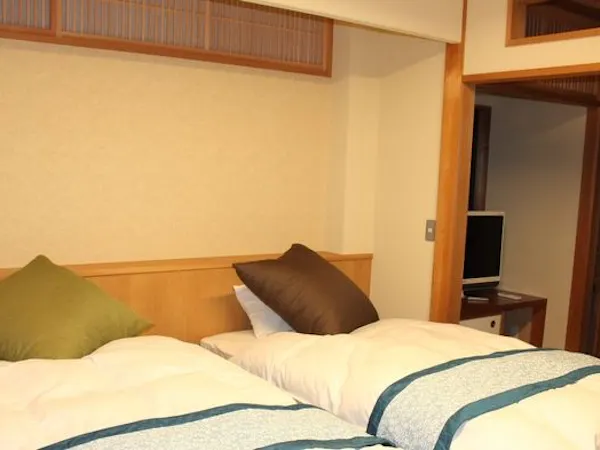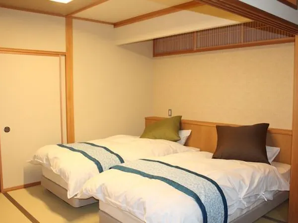 岩盤浴低温サウナ室付きの蔵の外観をもつお部屋 シモンズシングルベッド2台 和室6畳+6畳の二間 2022年12月リニューアルのお部屋です。 岩盤浴室を備え、シモンズベッドを採用しています。 貸切温泉はもちろん このお部屋のみが利用できる岩盤浴・シモンズベッドで今まで以上に すこやかな睡眠とリラックスタイムを・・・ ※3名様以上のご利用場合は 2名様のみベッド利用。他はお布団利用になります。 <お布団のご用意> 3名様以上でご利用の場合も予めお布団は敷かせていただきます。 ・冬季には、「こたつ」をご用意 <禁煙室> ・和室12畳・シモンズシングルベッド 2台 ・冷暖房完備 ・液晶テレビ(AQUOS 32型) ・マッサージチェア ・空気清浄機付き加湿器 ・Wifi対応 ※岩盤浴+シャワー ・洗面所 ・ドライヤー ・温水シャワー付きトイレ