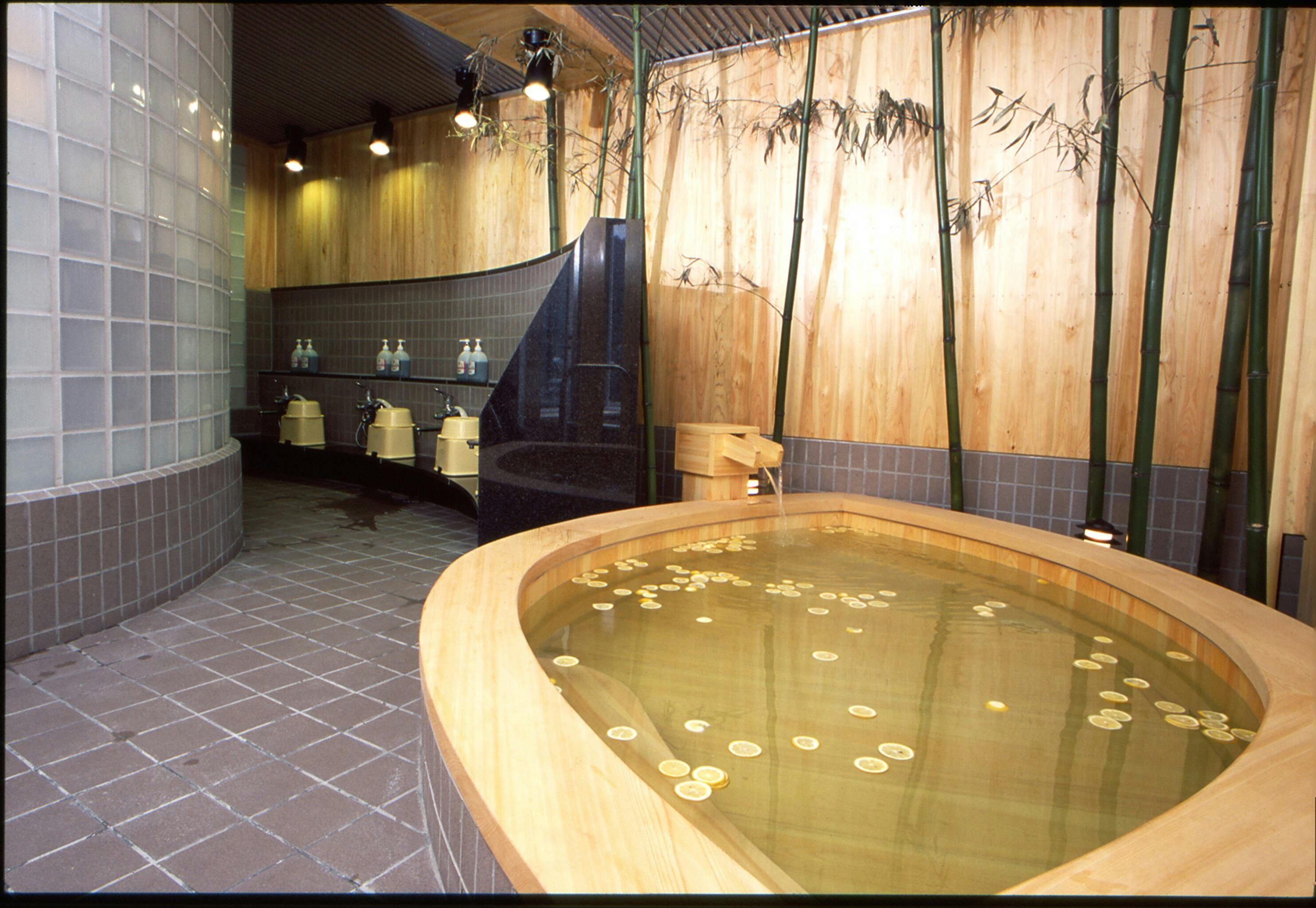 国内生産60%で日本一の当島のレモンを輪切りにして浮かべた当館の名物「レモン風呂」。