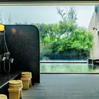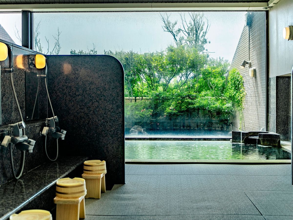 地下1300mから湧き出る、琥珀色をした高濃度の温泉は、クレンジングと保湿、両方の作用をもつ「美肌の湯」。 浸かればスーッと肌になじみ、撫でると実感!つるりん美肌をご体感いただけます。 露天風呂は、加温・加水なしの自家源泉100%かけ流し。 “ありのまま”の温泉を楽しむ贅沢な時間を心ゆくまでお愉しみください。
