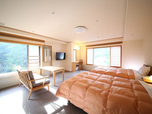 里山に囲まれて閑静な鹿教湯温泉で。 「わが家」としてお寛ぎいただける、長期滞在にも適したゲストルームです。