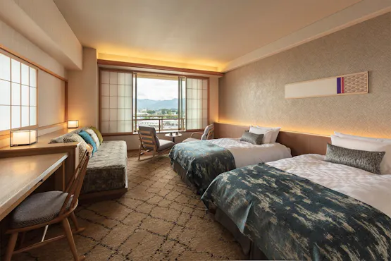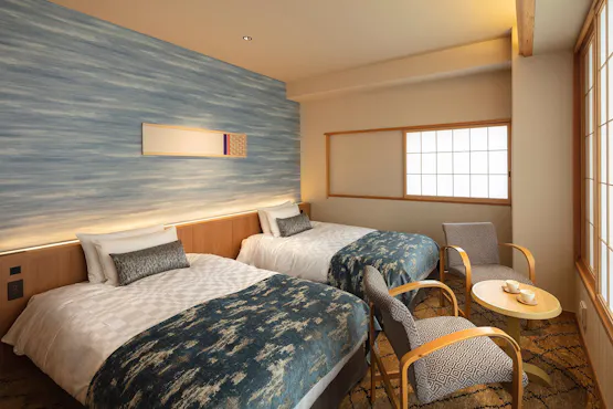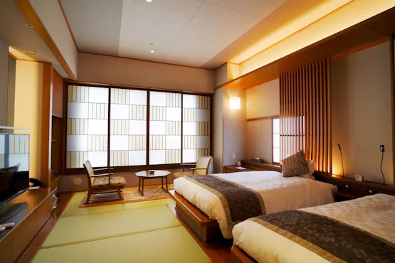 和風ツイン・・・畳敷きのお部屋に低めのベットを常設。落ち着いたお部屋でゆっくりと。