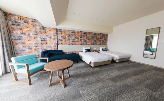 ゲスト 2026/2/8出張ついでに室内プールを利用したくて初めて宿泊しました。この日は混み合っていたようで、お部屋を無料でアップグレードしていただき、広々とした空間でとても快適に過ごせました。お目当ての室内温水プールは、時間帯もあり、ほぼ貸切状態。出張の疲れが一気に癒され、適度にリフレッシュできたので、ラウンジで軽くビールだけ飲んで寝るつもりでしたが、スタッフの方がとても感じが良く、つい話が弾み…。仕事への熱意に触れてこちらまで感激し、気づけば心地よく酔っていました。翌朝の朝食は沖縄料理が数多く並び、種類が豊富で、お刺身も美味しかったです。フリーアメニティの駄菓子コーナーや、子供用室内温水プールは、子供も喜ぶのではないでしょうか。「出張だから泊まる」のではなく、またゆっくり、家族とも滞在したいと思える素敵なホテルでした。