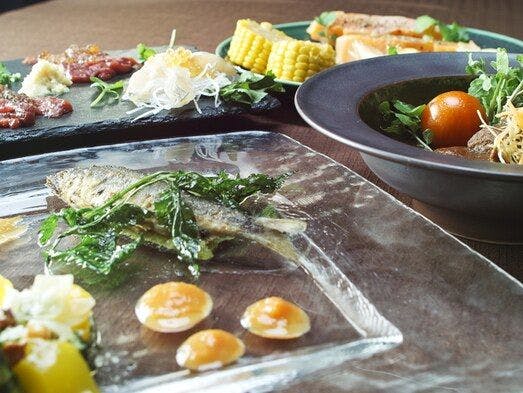 山と川の食材を活かした料理。山梨に関わりの深い食材を用いた当館オリジナルのお料理を存分にご堪能ください。お料理につきましては季節により変更する物と定番でお出しする物とございます。