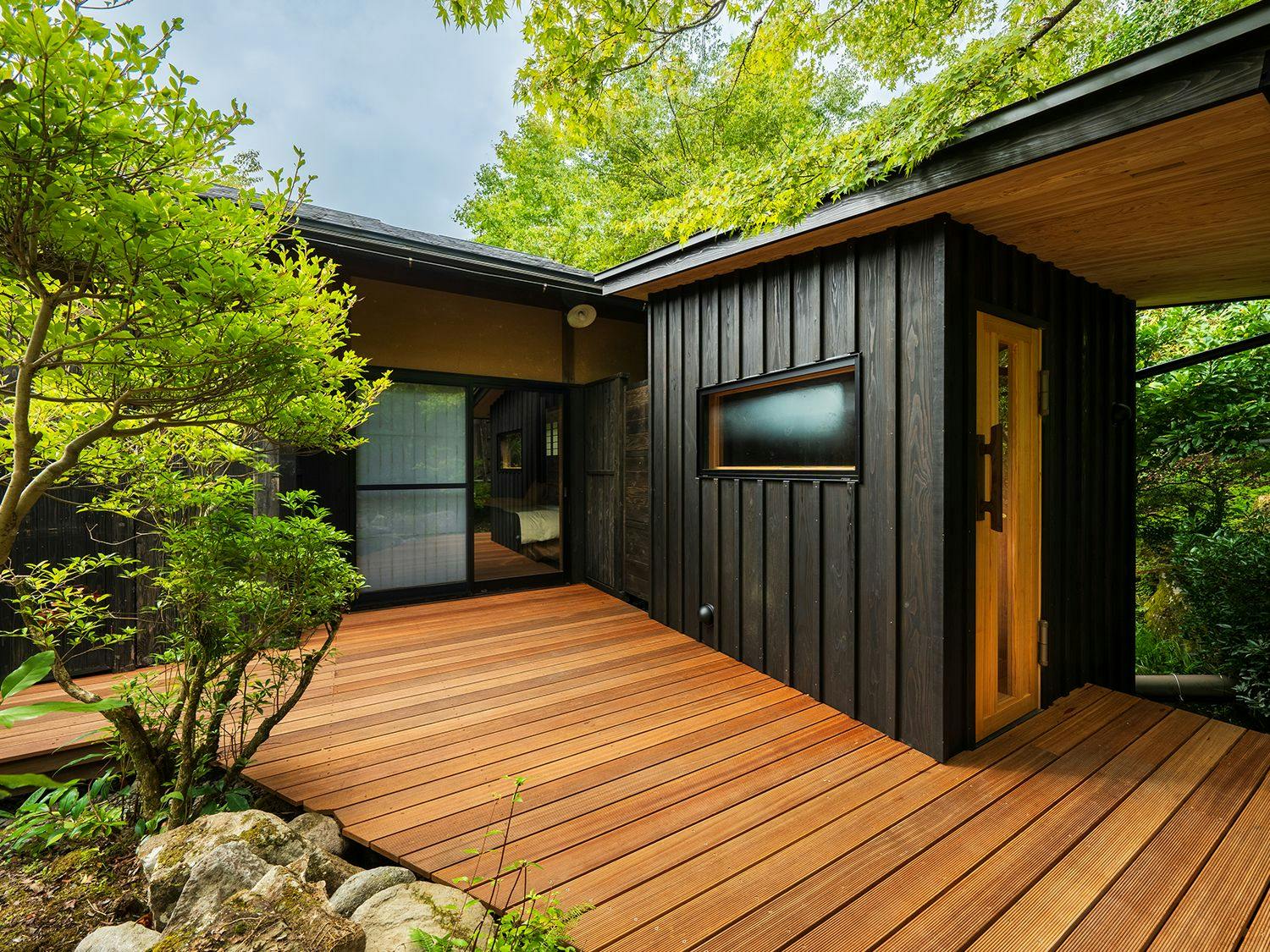 黒川温泉郷最上流にある、全室に露天風呂と内風呂を備えた離れ宿