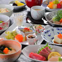 創業150年の老舗を誇る、全国でも珍しい木造3階建ての旅館。豆田町散策に最適の宿で、創業以来ほぼそのままの3階客室からは日田盆地が一望できます。地元で採れる旬の食材にこだわった料理長自慢の懐石料理は地元でも評判です。