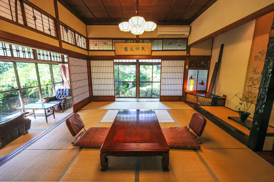 木造のお部屋は天井が高く、昔ながらの趣を感じる空間です。特に3階からの眺望が良く、お部屋からは日田盆地が一望できます。古の想いに心より浸って頂ければ幸いにございます。