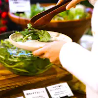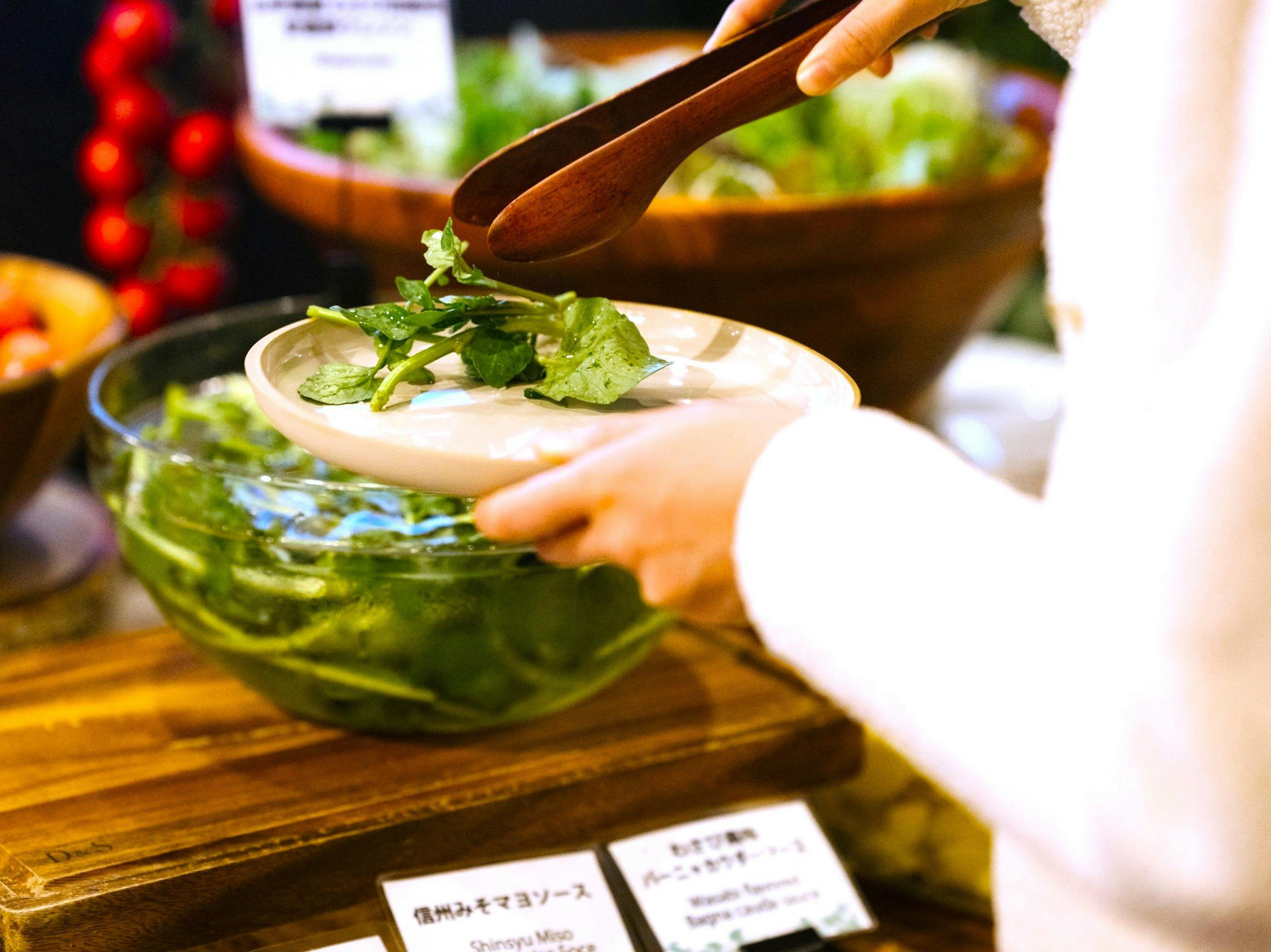 ・朝食バイキングでは一部使い捨て手袋を着用いただき料理をおとりいただきます。