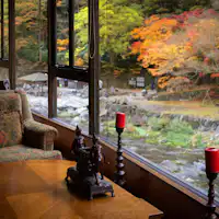 自然豊かな山あいの宿。約50種類もの野菜を主役にした山里料理が人気です。露天風呂からは川のせせらぎや山々、夜は満点の星空を望めます。岡山の自然の恵みを味わい、感じ、身も心も癒してみては。