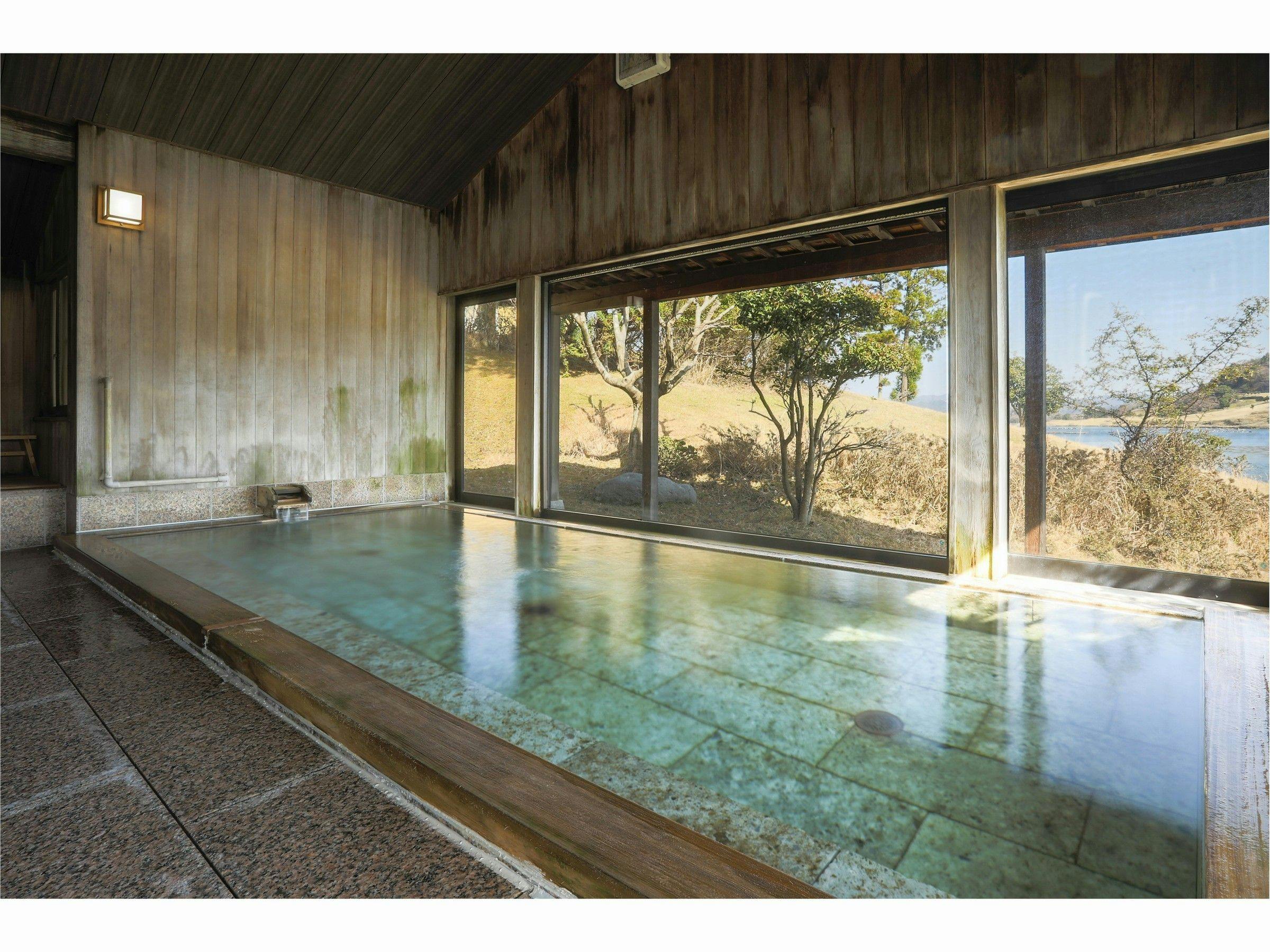 自家源泉の温泉風呂からはまるで風景画のような美しい眺め。海に包まれたお風呂で潮風を感じながらおくつろぎいただけます。 碧翠御苑の温泉は、大浴場・露天風呂ともに源泉を100%使用いたしております。加水は一切致しておりません。