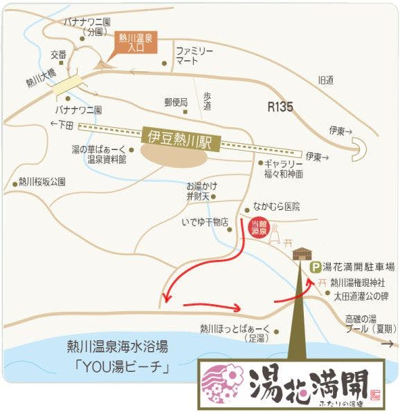伊豆熱川駅より徒歩3分 ※お車でお越しの際には(道が大変狭いので)干物屋さんの前で左折せず、一旦海まで突き当たり左折し海岸から太田道灌公像の前を通って駐車場へお越しください。 ★夕食付プランでご宿泊のお客様へ★ 夕食は18時からとなります。チェックインは15時~17時(最終)となります。夕食会場は20時までとなります。お時間には余裕を持っておでかけください。