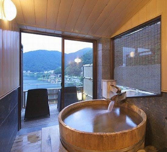 河口湖を一望する展望風呂と、地元食材にこだわった料理が魅力の宿