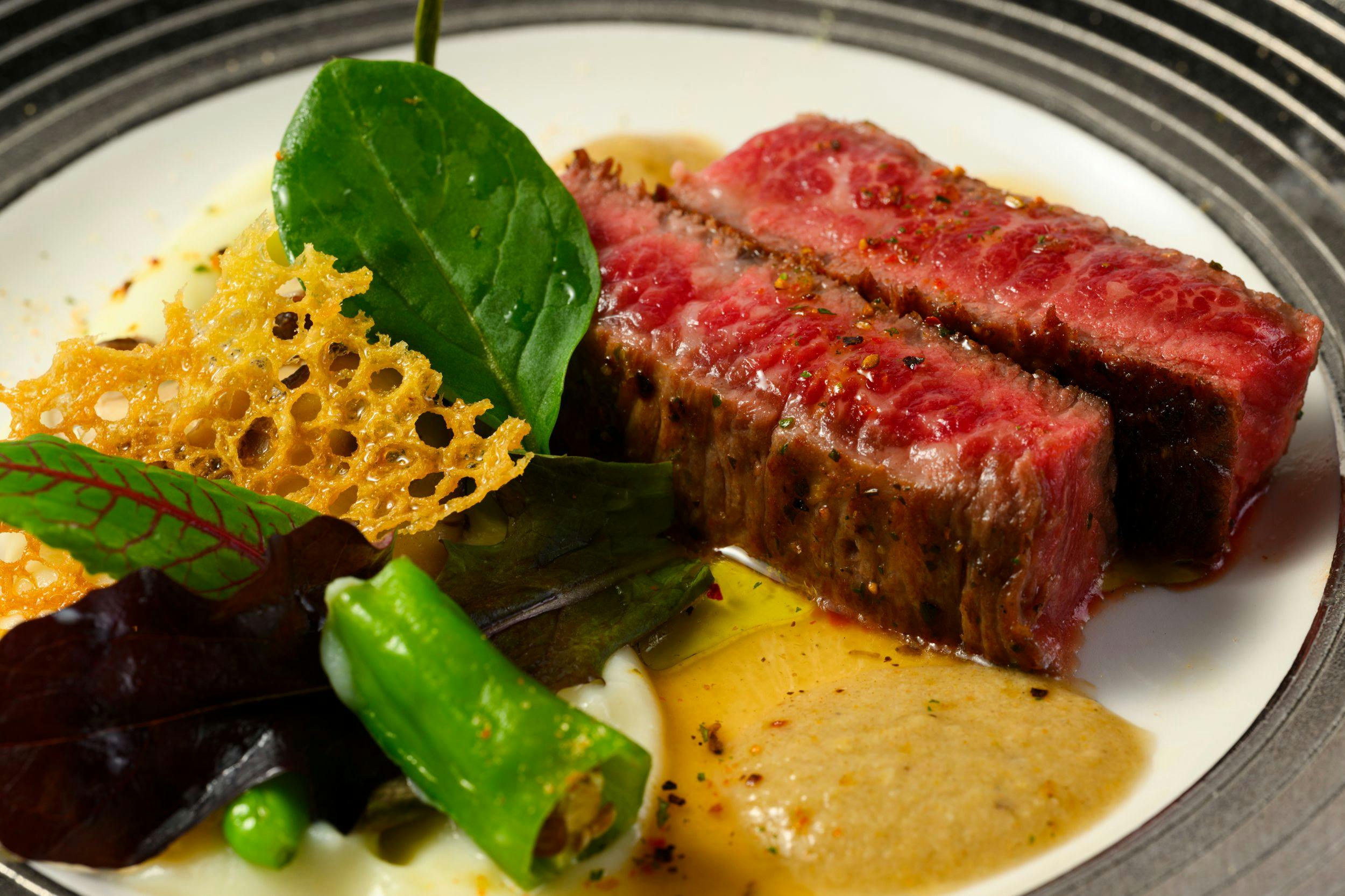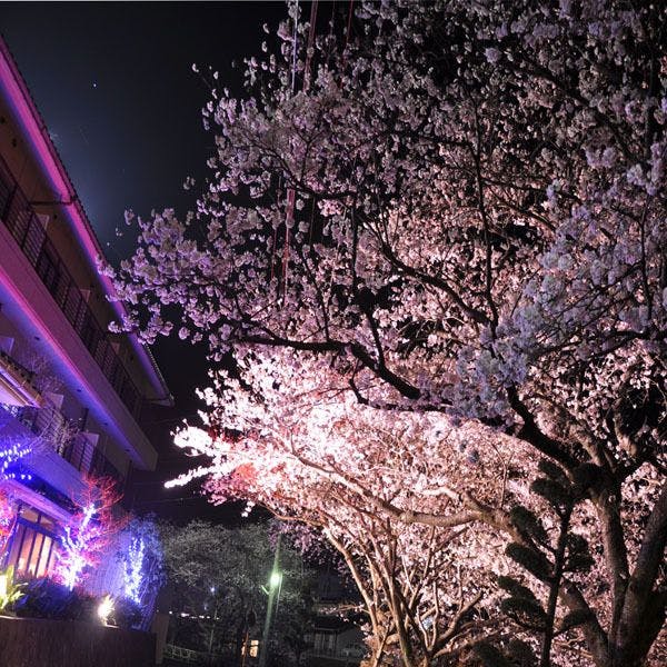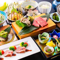ライトアップされた庭園を見ながら、モダンな雰囲気の中、季節の会席をお楽しみください。