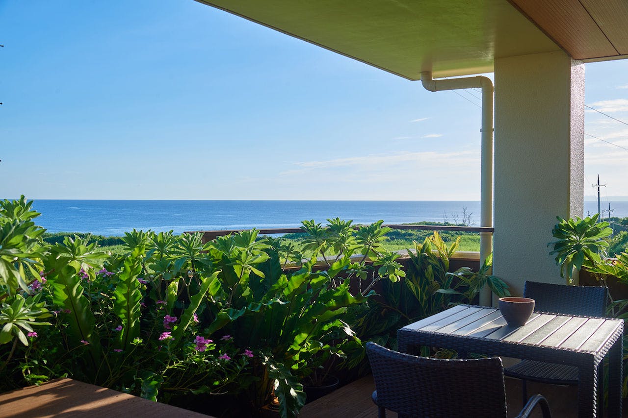 ジャグジー付きの海側テラスからは、美しい東シナ海越しに伊是名島や伊平屋島、本島北部の山並みが見渡せ、小魚を追う大きな魚が水面からジャンプする様や、冬期間限定でクジラの姿を見ることが出来ます。