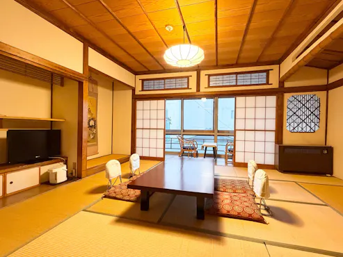 大正九年に建築された本館は、現在まで木肌のぬくもりをお客様にお伝えしようと、今日ではめずらしい総桧造りの四階建ての構えでお待ちしております。 「本館西棟」の各お部屋は書院造りを基本としながらも、お部屋ごとに意匠を凝らした趣きのある造りになっています。昔ながらの襖で仕切られた二間つづきの和室はどなた様にも懐かしく感じられることと思います。 対象的に「本館東棟」の各お部屋は平成二十二年にリニューアル致しました。 柱、天井、障子、欄間などを生かしつつ、モダンな雰囲気になっております。広々とした解放感と木のぬくもりが共存し、快適な滞在をお約束致します。
