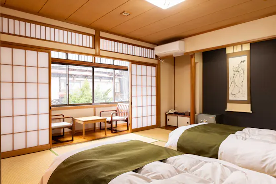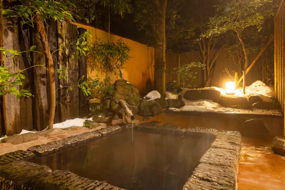 創業400年の歴史を持つ老舗宿。源泉かけ流し源泉は、湯船に注がれる頃には心地よい適温となり、肌にやさしい滑らかな湯を楽しめます。お食事は、年間を通して楽しめる3種類の会席料理と、旬の食材を活かした季節会席からお選びいただけます。地元・因幡地方の山海の幸をふんだんに使用した、素材・味・香りにこだわった料理を心ゆくまでご堪能ください。庭園の中にある貸切風呂や総ヒノキの大浴場湯舟で心を安め、お愉しみ下さいませ。 さらに、貸切風呂の隣には開放感のあるプライベートサウナも完備。智頭町産のヒノキを使ったキャビンでは本格的なサウナ体験が楽しめます。水風呂と外気浴スペースもあり、庭園の木々に囲まれた静かな空間で、誰にも邪魔されずに極上のリラックスタイムはいかがでしょうか。