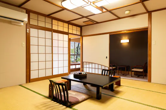 湯処の風情にあふれた和室。ベッドでお寛ぎいただける和洋室。そして、専用露天風呂を備えた特別室の3タイプがございます。 特別室では、九州の八女石を組み上げた、風雅な専用露天風呂を持つお部屋です。源泉掛け流しの贅沢さと、奥には小さな庭園も構え、満ち足りたひとときを演出いたします。 それぞれのお部屋が持つ趣と魅力を存分にご堪能いただき、心落ち着く空間で特別なひとときをお過ごしください。