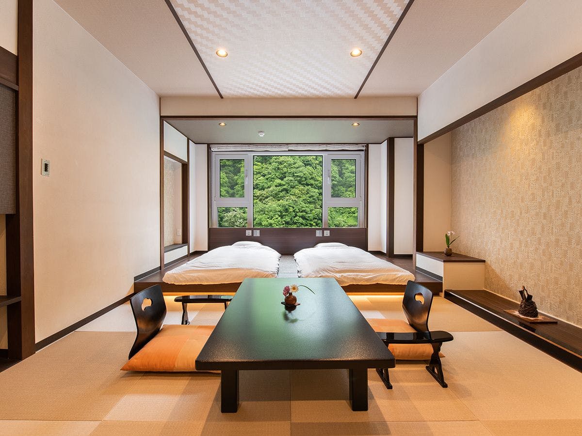 黒部峡谷に最も近い眺望自慢の温泉宿。対岸を走るトロッコ電車に手を振れるロケーションの良さは宇奈月温泉随一。映画「釣りバカ日誌」ロケ宿としても有名です。美肌の湯と富山の海幸料理と共にお愉しみ下さい。