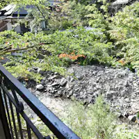 ・温泉: あり ・かけ流し: あり ・にごり湯: なし ・補足事項: 源泉100% ゴツゴツとした大石とスダレに囲まれた露天風呂。 渓流と隣り合わせで、瀬音を聞きながらの入浴は情緒たっぷり。 レディースタイム有り