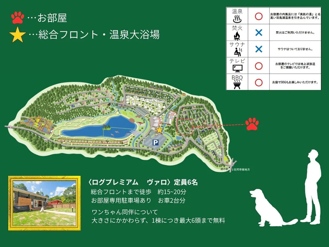 1泊2食 夕食はプレミアムメニューのプランです 【夏季:プレミアムBBQ 冬季:ブイヤベース】 プレミアムBBQ:~2025.10.31まで、2026.4.6~2026.8.31まで ブイヤベース:2025.11.1~2026.4.5.まで プレミアムBBQ お品書き一例 ・スズキ昆布〆のカルパッチョ ・サラダ(彩り野菜のバーニャカウダ) ・福島県産牛サーロイン 80g ・福島県産麓山高原豚肩ロース 80g ・伊達鶏もも肉の香草焼き 100g ・骨付きソーセージ 1本 ・ロブスター 半身 ・鮎 1尾 ・野菜のブロシェット 1本 ・ガーリックライス ・本日のデザート(チョコレートフォンデュ) ※上記は1人前の分量です。 ※仕入れ状況により内容が替わる場合があります。 ブイヤベースお品書き一例 ・前菜盛り合わせ ・ブルスケッタ ・会津産馬肉のカルパッチョ ・福島県産牛の陶板焼き 80g ・ブイヤベース(ロブスター半身、ずわい蟹1/2肩、ハマグリ1個、ムール貝2個、烏賊50g) ・バゲットトースト ・フルーツ&デザート ※上記は1人前の分量です ※仕入れ状況により内容が替わる場合があります。 ■ワンちゃんの受入数・追加料金について■ コテージごとに規定がございます。 各コテージの詳細情報をご覧いただくか、施設に直接お問い合わせください。 ※ワンちゃん以外のペット(猫や小動物)はドームコテージカウラをご利用いただけます。 ■ご宿泊特典 彩光の湯がご利用いただけます。 タオルは客室へのご用意となります。 チェックイン前、チェックアウト後に「彩光の湯」をご利用の場合は、 タオルのご用意が出来ませんのでご持参いただきますようお願いいたします。 平日(月~金曜日)は11:00から15:00まで清掃時間の為ご利用いただけません。 ■当館のコンセプト 当館は“愛犬と一緒に泊まれるコテージリゾート”をテーマにありのままの大自然を活かし、多彩な施設が点在する複合リゾートホテルです。 もちろん愛犬がいなくても、カップルやご家族でも楽しめるアクティビティなども充実しておりますので様々なシーンでお楽しみいただけます。 ■東北初!“snow peak”直営店が館内に ギアやアパレルなどのおなじみのアウトドア用品に加えて、フライフィッシング関連用品、アウトドアクロージング、ドッグアクセサリーの販売も行っております。また、ショップ内にはカフェ「Snow Peak Cafe SHIRAKAWA KOGEN」も併設し、焼き立てパンや自家製アウトドアカレーライス、紅茶などを提供し大自然の中でゆっくりと過ごしていただけます。 ■ph値9.7アルカリ泉質の天然温泉や屋外ログハウスサウナも設備 アルカリ泉質の天然温泉「彩光の湯」と屋内プールや水着着用スパ施設「ガーデンスパ」(期間限定)、そして本場フィンランドの雰囲気が楽しめる森のサウナ「カベリ」が屋外にあり、こちらもお楽しみいただけます。 ■園内で楽しめる様々なアクティビティもご用意 約2万匹の魚が回遊する国内でも最大級のフィッシングや、カナディアンカヌー、レンタサイクル、テニスなどのスポーツアクティビティはもちろん、スノーシーズンは湖畔でのソリ、オールシーズンでお楽しみいただけけます。 【チェックイン・アウト時間について】 通常:15:00イン/10:00アウト グランピング:14:00イン/10:00アウト レイクサイドドッグヴィラ・ドームコテージ:15:00イン/11:00アウト ●ワンちゃんの記念日をエンゼルフォレスト白河高原でお祝いしませんか? ご宿泊日当月がお誕生日、またはうちの子記念日のワンちゃんに、お誕生日ケーキをプレゼント! ご予約時に「ワンちゃんのお誕生日旅行」である旨をご入力ください。 詳細はこちら→https://www.ang-sk.com/dog プランの注意事項