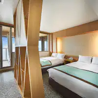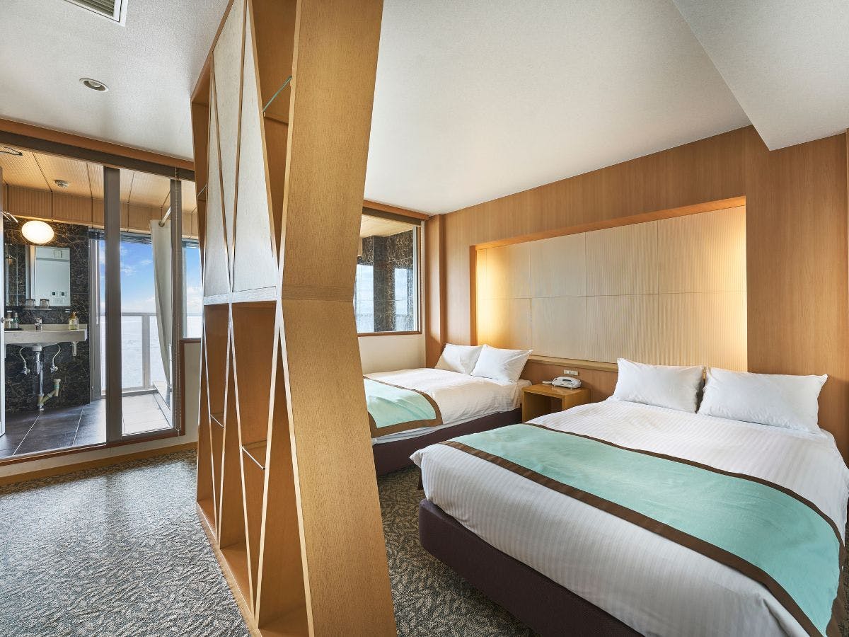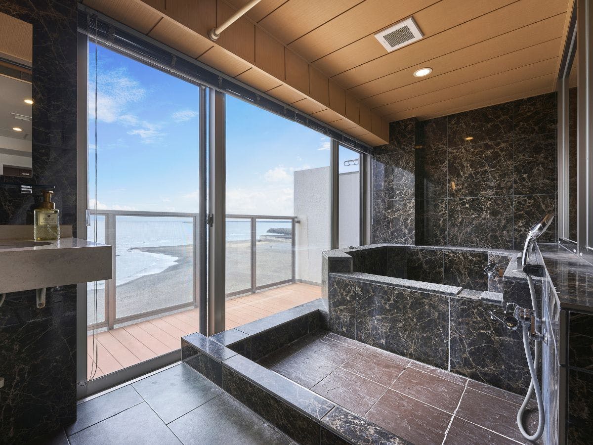 眼下に広がる雄大な海原。感動的な日の出や夕凪の海、海面に映る月など時間を追うごとに姿を変える大自然。半露天風呂を備えたゲストルームをはじめ、様々なタイプの客室をご用意しております。