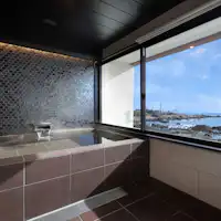 太平洋と野嶋埼灯台一望するオーシャンビューの和モダンの宿。味わい豊かで個性的な美食膳と2種の温泉浴場と貸切風呂が人気。赤ちゃん連れにも優しいサービスが豊富で、家族旅行や妊婦さんの旅行にもお勧めです。