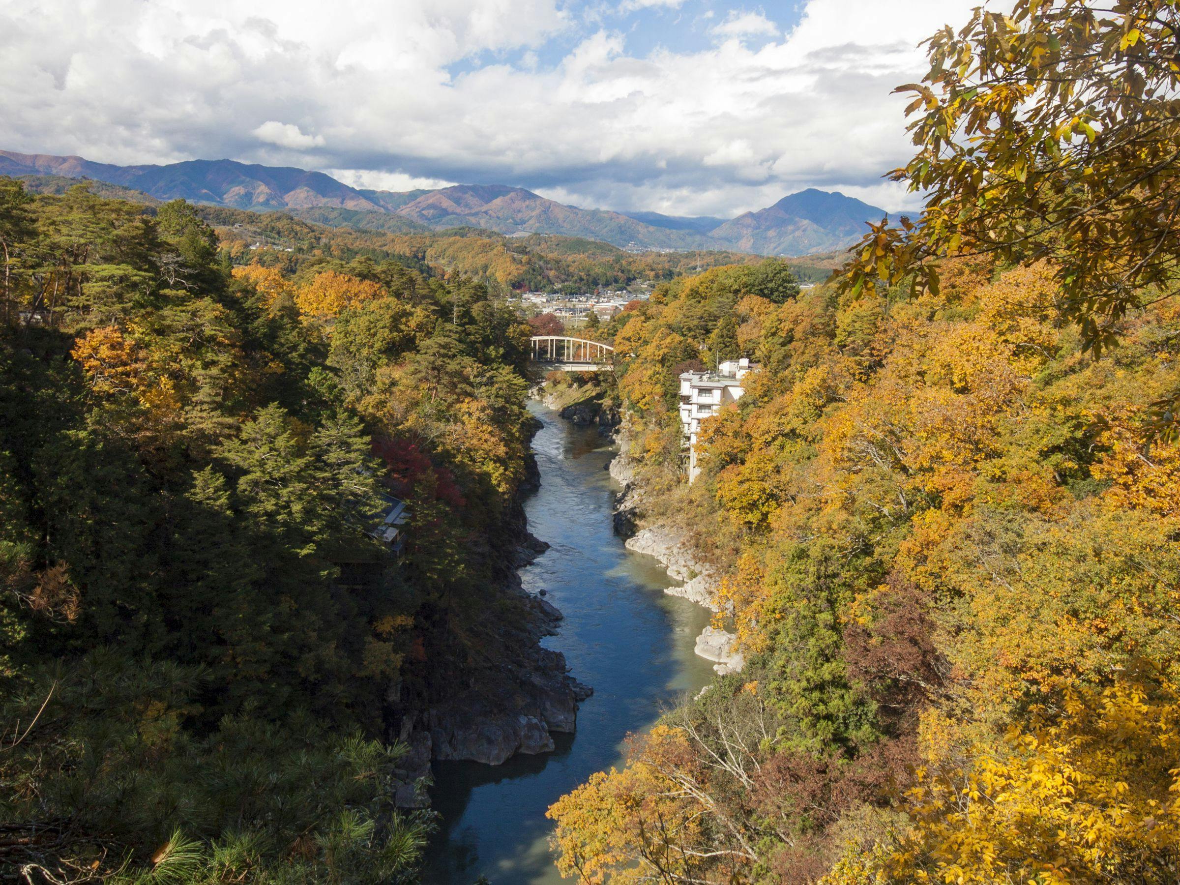 中央自動車道飯田ICよりお車約15分。 舟下りで有名な天竜川河畔、乗場まで5分で川下りをご満喫いただけます。(割引有)