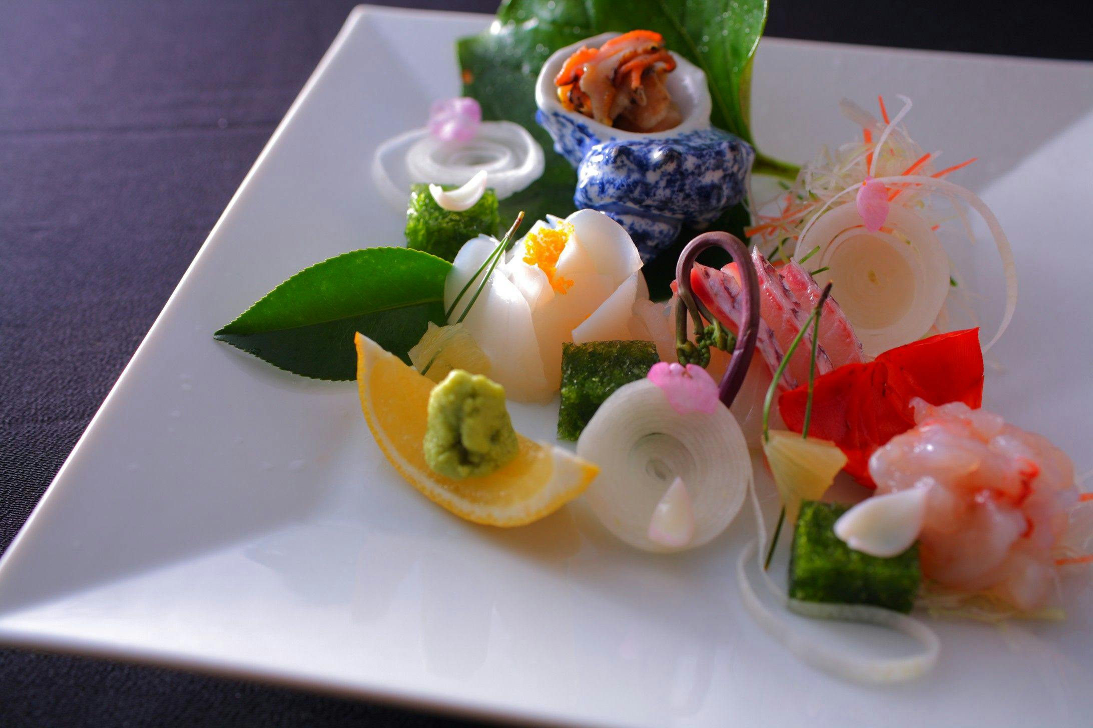特別な地で特別なお料理を味わって頂きたい。その思いを込めて料理長小柳耕司が創る伊豆ならではのお料理WAON(和音ん)伊勢海老、アワビ、金目鯛、等の伊豆の名物をご堪能下さい。